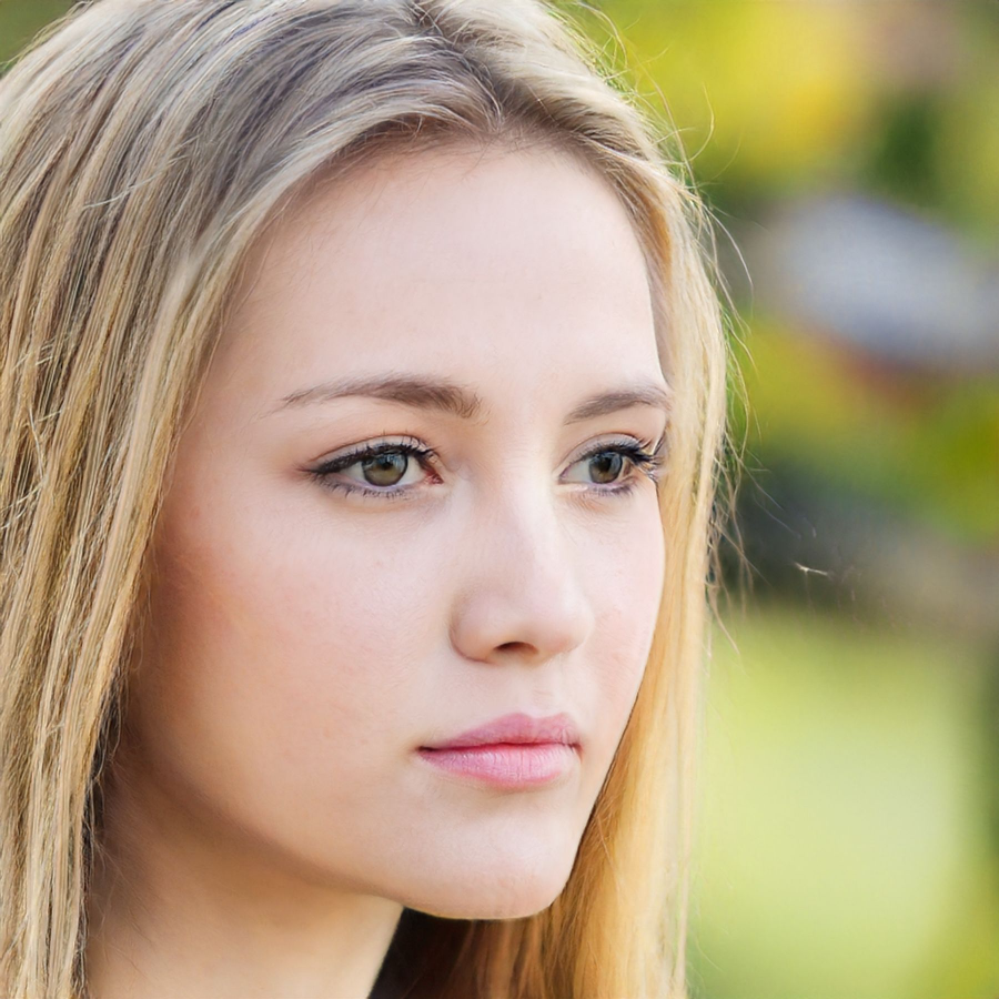 金髪の白人女性。斜め向き。